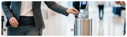 - Zbliżeniowe karty RFID: zapewniają jednokierunkową transmisję danych z karty do czytnika. Są łatwe w użyciu — wystarczy zeskanować kartę, aby przesłać dane.