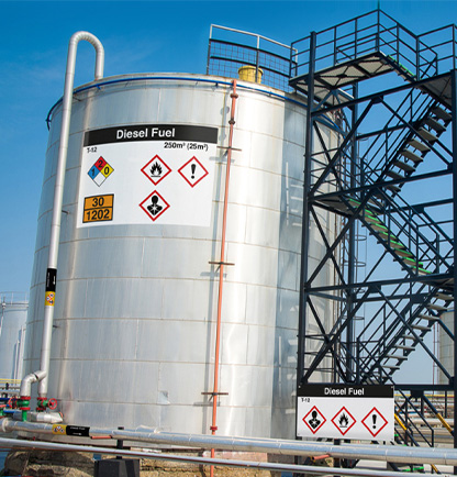 Znaczniki zbiorników zgodne z normą ISO 20560 czytelnie wskazują ukryte zagrożenia związane z substancjami i dostarczają ważnych informacji w odniesieniu do bezpieczeństwa samego zbiornika, środków ochrony indywidualnej, które należy nosić, oraz ostrzeżeń lub zakazów, które należy mieć na uwadze. Informacje te w sposób istotny przyczyniają się do bezpieczeństwa i wydajności działań konserwacyjnych.